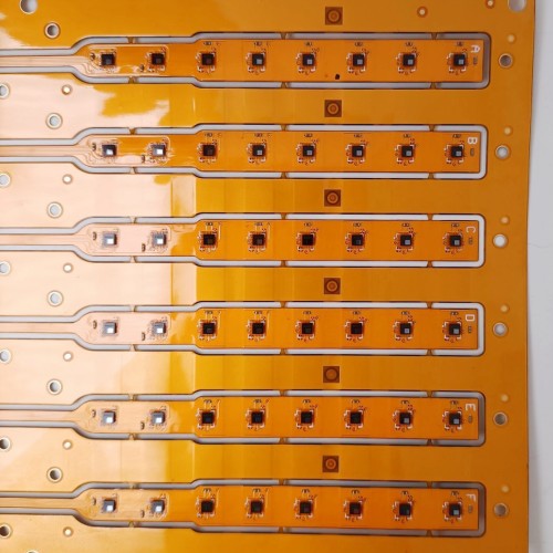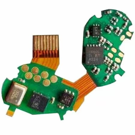 This PCB (Printed Circuit Board) is a 2Layer Rigid-Flex PCB made with FR4 + PI material and mounted with components on top side